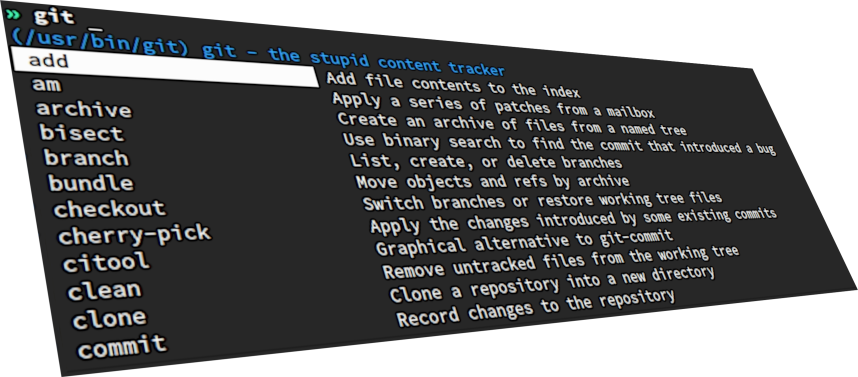 |works exactly the same as in any normal shell. (read more)->displays all of the supported methods (commands that support the output of the previous command). Think of it a little like object orientated programming where an object will have functions (methods) attached. (read more)