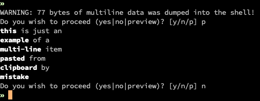 ) - readline’s warning before pasting multiple lines of data into the buffer and the preview option that’s available as part of the aforementioned warning